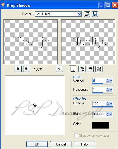 4. Pas een slagschaduw toe: h+v op 1, opacity 100, blur 0