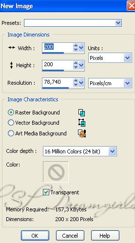 1. Open een plaatje van 200 x 200 transparant.