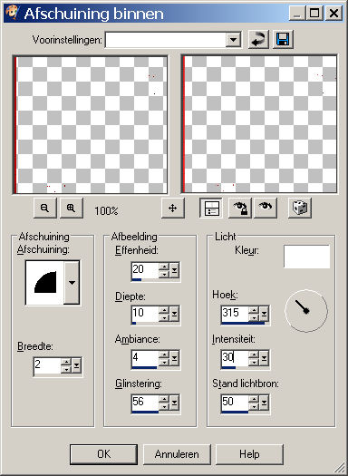 Ga naar effecten - 3d effecten - gestanst met de volgende instellingen. herhalen met -2.